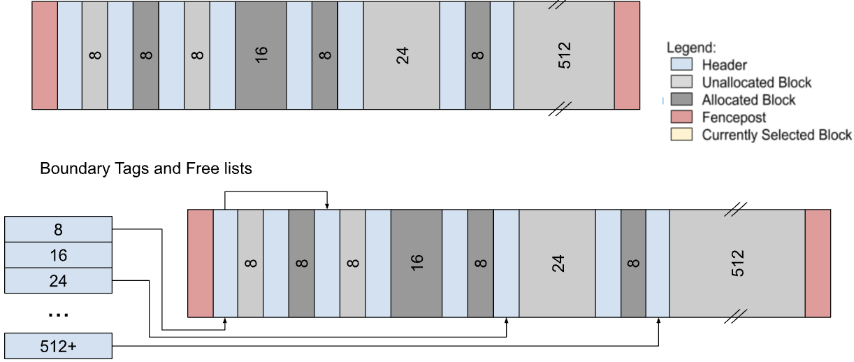 I built a custom malloc library in C to learn more about systems programming. My implementation handles dynamic allocation with explicit free lists for constant time operations, safe deallocation by coalescing with boundary tags, and uses mutexes for thread safety. Through this project, I've gained a better understanding of the tradeoffs allocators make between speed and memory fragmentation.